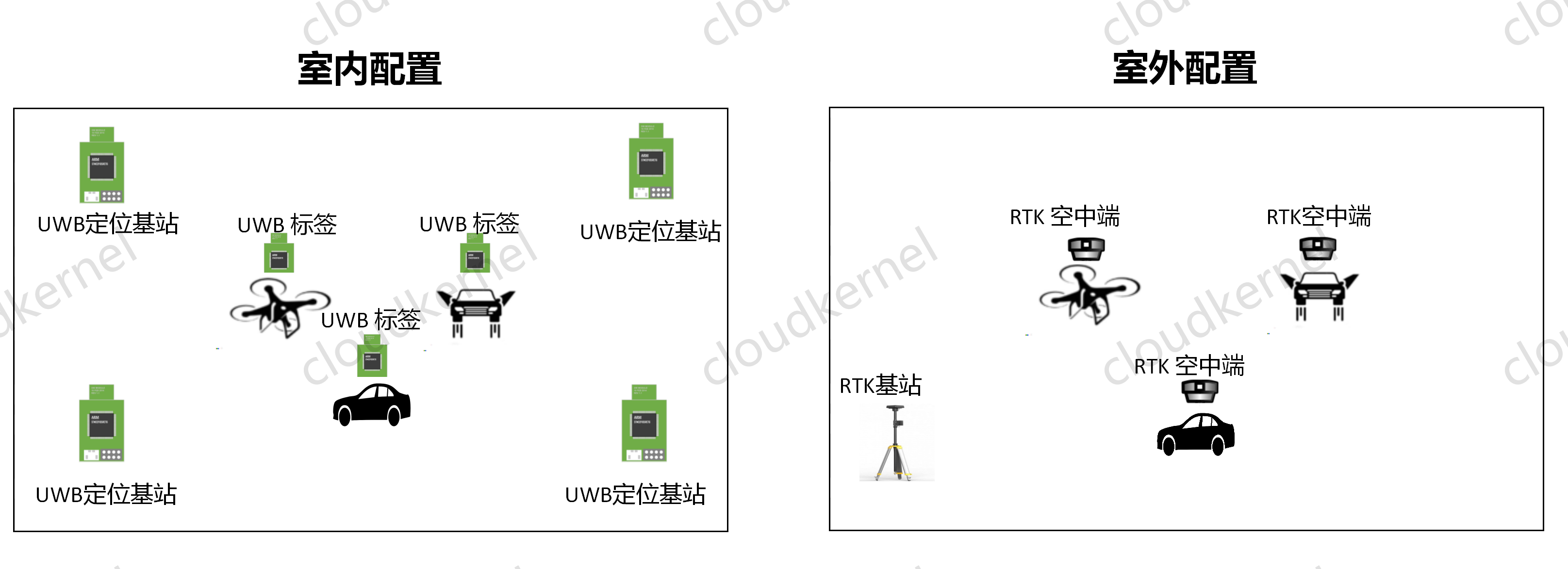 室外配置采用RTK(实时动态)GPS信号进行全局定位,理论上可以支持无限数量的机器人。我们建议使用最小场地尺寸为20m*20m,室外环境应宽敞,以便个机器人可以通过RTK获得厘米级定位精度。